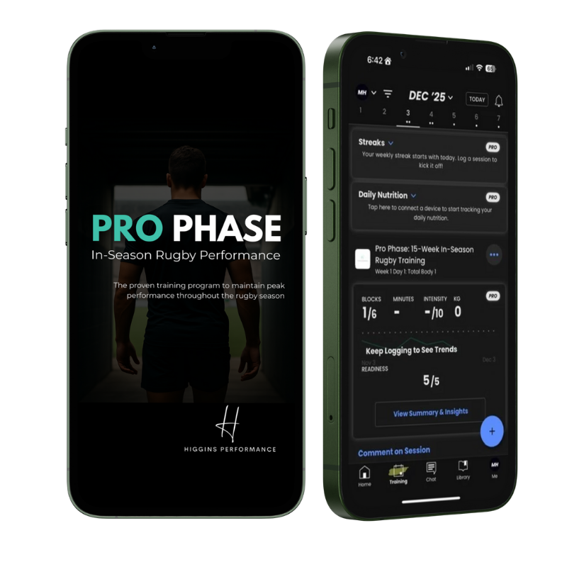 Pro Phase is that framework, now packaged so developing and aspiring players can tap into the same system that was battle-tested in elite rugby. It is not a random collection of workouts. It is a proven in-season performance plan built to keep you explosive, robust, and ready to perform, week after week.